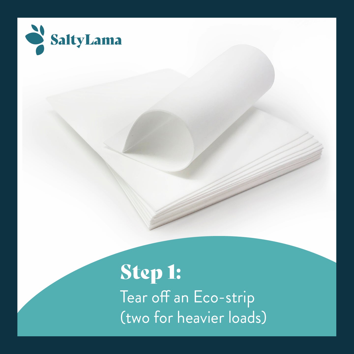 SaltyLama Laundry Detergent has a dramatically smaller eco-footprint than liquid and powder detergents. Its packaging uses no plastic jug, and its light weight reduces transportation fuel consumption and global-warming carbon emissions compared to today’s liquid and powder detergent.